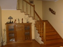 Komunikacja pomiędzy parterem a piętrem wygodnymi schodami pokrytymi deską dębową. W części przyziemia garaż na dwa samochody, oraz salon. Dwa pomieszczenia gospodarcze oraz kotłownia z wysokiej klasy piecem gazowym dwufunkcyjnym. Całe przyziemie wyłożone płytkami ceramicznymi .