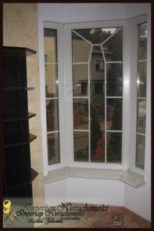 Powierzchnia całkowita, uwzględniająca piwnicę w której urządzone są dwa dodatkowe jasne pokoje to 190m2. Dom jest skrajnym segmentem zabudowy szeregowej i dzięki temu posadowiony jest na większej niż sąsiednie działce (303m2). Działka jest ogrodzona płotem z segmentów metalowych osadzonych na kamiennych słupkach.