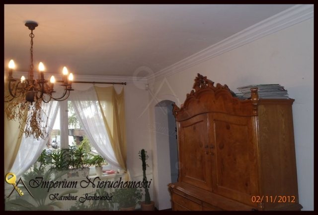 Dom wraz z dwustanowiskowym garażem znajdującym się bryle budynku wybudowano w latach 80 – tych ubiegłego stulecia. Ściany zewnętrzne wykonano w systemie warstwowym, murowane z elementów ceramicznych i otynkowano. Stolarka okienna drewniana, wykonana na zamówienie, częściowo zabezpieczona ozdobnymi kratami. Wystawa okien domu na wszystkie strony świata. Stolarka drzwiowa wewnętrzna oraz zewnętrzna drewniana, wysokiej jakości. Dach skośny, dwuspadowy pokryto dachówką ceramiczną. Ogrzewanie domu oraz wody użytkowej piecem zasilanym energią elektryczną. Instalacje: elektryczna, wod-kan z odprowadzeniem do sieci, instalacja gazowa w granicy działki. Dom jest wyposażony w alarm i strzeżony przez profesjonalną firmę ochroniarską. Dom jest przestronny, przytulny i zadbany. W 2003 roku przeprowadzono generalny remont budynku. Widoczne na zdjęciach wyposażenie i umeblowanie nie jest przedmiotem sprzedaży.
