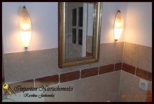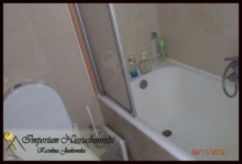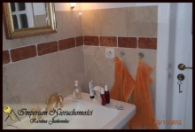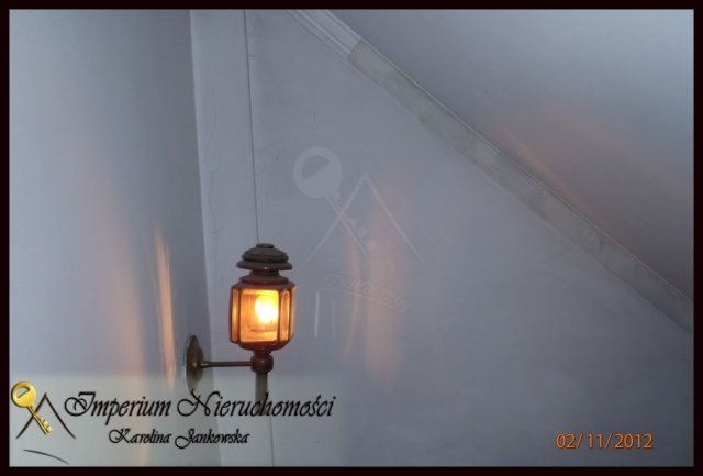 Na piętrze jest korytarz ok.12,80m2, łazienka 7,20m2, dwa pokoje o powierzchni ok. 12,50m2 i 22,30m2 oraz klatka schodowa 9,00m2. Na wprost klatki schodowej jest wejście do łazienki wyposażonej w wannę umywalkę i toaletę. Na podłodze oraz częściowo na ścianach położono płytki ceramiczne, pozostałą powierzchnie ścian pokryto gładzią gipsową i pomalowano. Po obu stronach korytarza znajdują się pokoje, z jednego z nich jest wyjście na taras. Na podłodze pokoi oraz korytarza położono deski drewniane, ściany pokryto gładzią gipsową i pomalowano na jasny kolor.