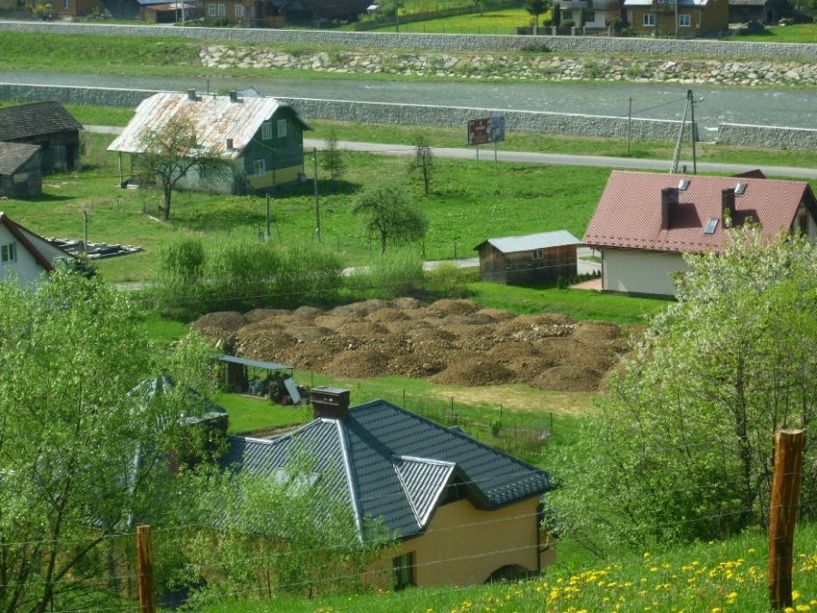 Działka płaska w kształcie prostokata, położona przy drodze asfaltowej. Teren bardzo słoneczny.