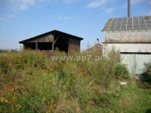 Działka płaska, częściowo ogrodzona z zabudowaniami do adaptacji lub wyburzenia.