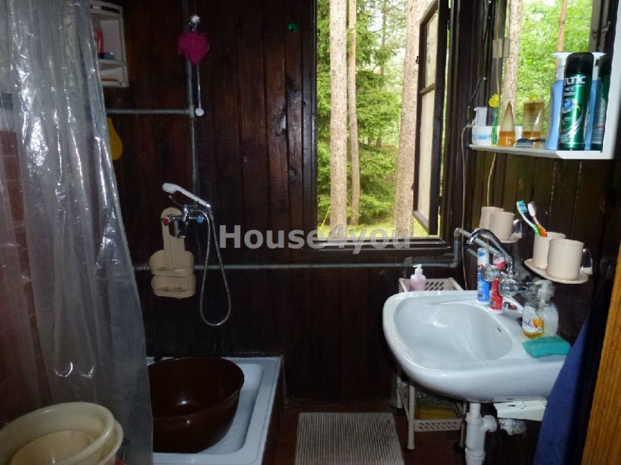 Dom drewniany. kryty papą, ujecie wody własne, szambo.
