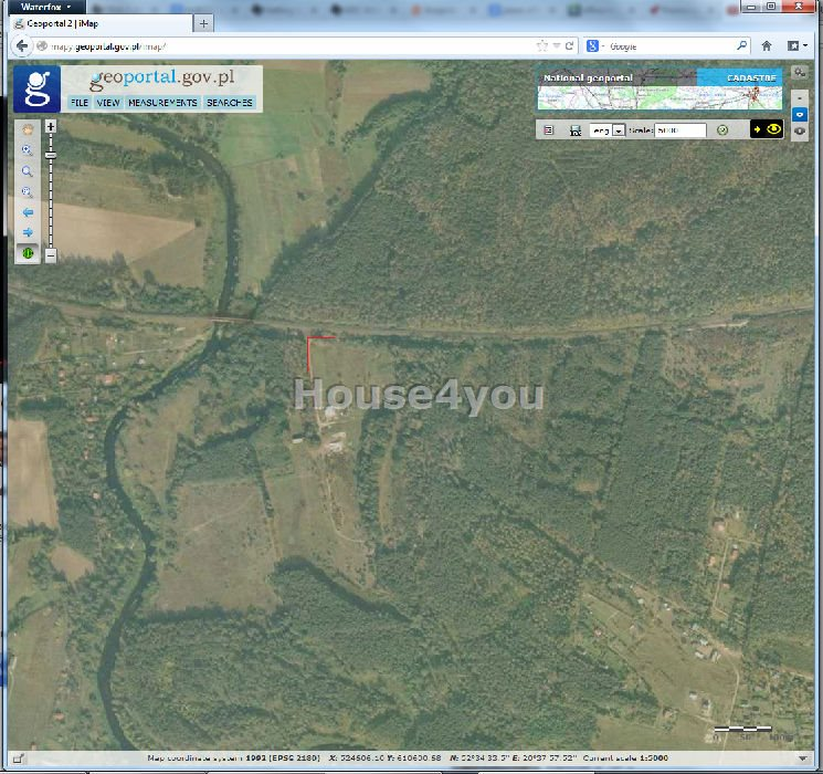 Do rzeki Wkry około 800metrów. Obok działki zbudowane domami letniskowymi.