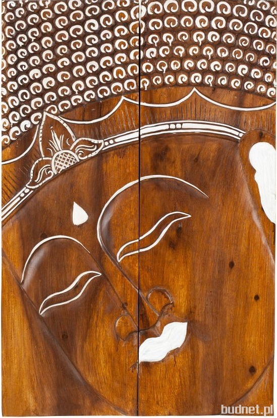 płaskorzeźba Budda – okazuje się dobrym pomysłem na zaaranżowanie wnętrza w stylu kolonialnym bliskim Azji. Połyskliwe drewno z widocznymi sękami oraz własnoręcznie wykonane, białe zdobienia to najbardziej wyraziste zalety tej dekoracji. Możesz zawiesić płaskorzeźbę na ścianie lub oprzeć ją o ścianę – w obu sytuacjach wzbogaci Twój salon o orientalny akcent.