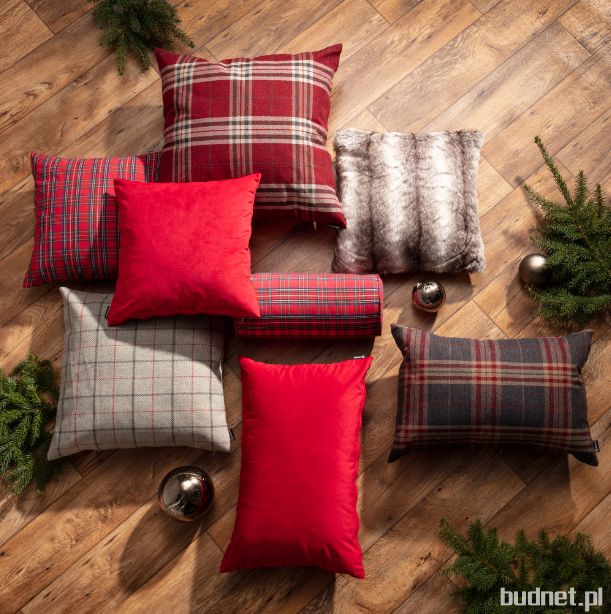 Również na dekoracyjnych poduszkach pojawia się modna krata. Najlepiej, aby była utrzymana w kolorach beżu, czerwieni i szarości.