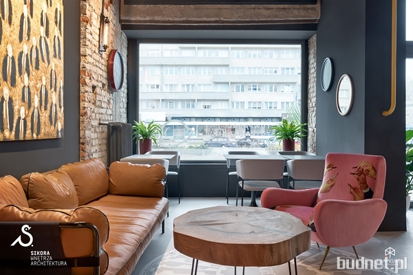 „Przestrzeń kreuje dowcip i zabawa konwencją typowego stylu industrialnego. Zbudowana z 24.000 klocków ściana, inspirowana dziełami tworzonymi w przestrzeni publicznej i wklejkami do murów, stała się jednym z głównych elementów kojarzonych z POP-inem. Grafikę opracował Jacek Wielebski - znany grafik i współtwórca Traffic Design. Taki projekt wymagał zastosowania oświetlenia, które wyeksponowałoby wnętrze i podkreśliło jego walory. Wybraliśmy szynoprzewody od marki AQForm, model PET next LED track, który idealnie sprawdził się w wyeksponowaniu zaprojektowanej sztuki.” – mówi Jan Sikora z pracowni Sikora Wnętrza.