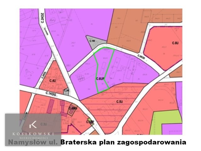 Zgodnie z planem zagospodarowania przestrzennego teren oznaczony symbolem UP - teren usługowo - produkcyjny. Zabudowa dopuszczona to między innymi: