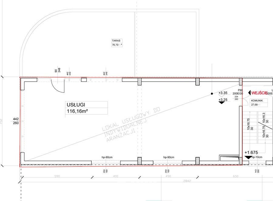 Lokal do indywidualnej aranżacji: lokal jednopoziomowy na 1 piętrze z tarasem o pow. ok 76 m2.