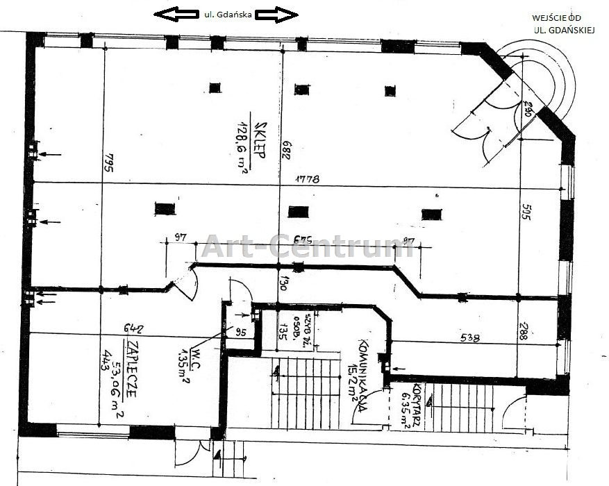 Lokal 183m2 w bardzo atrakcyjnej lokalizacji przy ulicy Gdańskiej. Wejście do lokalu od ulicy - narożnikowe. Duża witryna - układ 9 okien (lokal bardzo dobrze doświetlony światłem naturalnym). Obszerne zaplecze. Klimatyzatory na wyposażeniu.