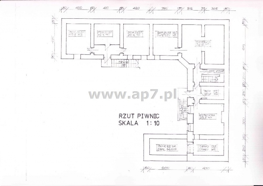 Na całkowity metraż składają się 4 kondygnacje : piwnice 60m2, parter 167m2, piętro I 193m2, piętro II 193m2, piętro III 330m2.