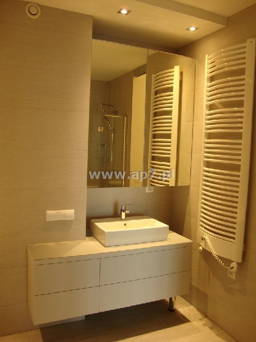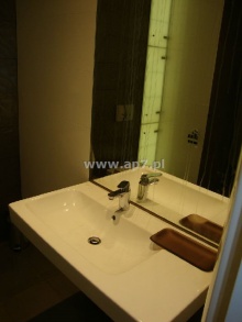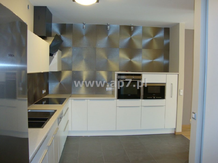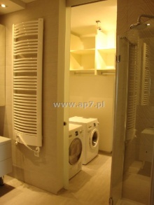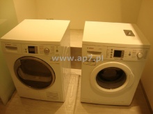 Apartament wykończony z materiałów najwyższej klasy z niezwykle dużą dbałością o detale. Na podłogach położony został wysokiej klasy parkiet oraz piękny gres. Kuchnia umeblowana i wyposażona w sprzęt AGD dodatkowo posiada bardzo pojemną spiżarnią w zabudowie. Łazienki wykończone w bardzo nowoczesny i efektowny sposób. Jedna łazienka dodatkowo posiada oddzielną umeblowaną i wyposażoną (zabudowa, pralka, suszarka) pralnię. W obu łazienkach zamontowane kabiny prysznicowe natomiast w tej z pralnią dodatkowo zamontowano wannę. W garderobie zamontowano półki i wieszaki.