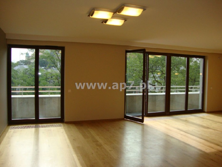 Do wynajęcia wspaniały i klimatyzowany apartament o pow. 167m2 położony w okolicach ul. Zwierzynieckiej, oddalony o ok. 200m od Wawelu i o ok. 800m od Rynku Głównego w niezwykle reprezentacyjnym i nowoczesnym budynku. Do apartamentu przynależą dwa tarasy oraz dwa miejsca postojowe w podziemnym garażu.