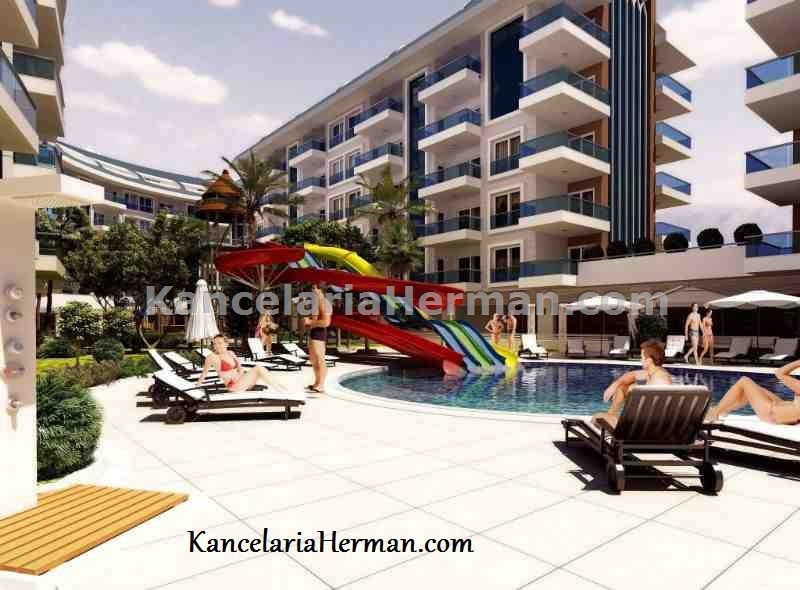 Nowoczesny luksusowy kompleks rezydencjalny "Aqua Residence" z pełną infrastrukturą, wspaniałą działką, tropikalnym ogrodem, luksusowymi apartamentami z panoramicznym widokiem, zaprojektowane wg najnowszych trendów i wyposażone w najnowocześniejszą technologię położony jest w miasteczku Kestel koło Alanyi.