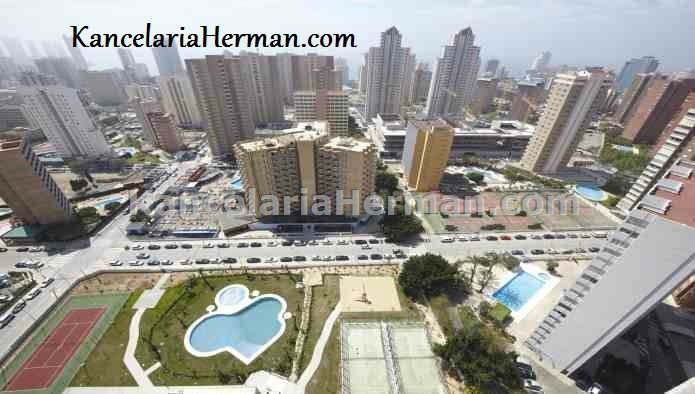 Ekskluzywny apartament w słynnym mieście Benidorm (zwanym Manhatanem Europy) o pow. 85m składający się z 1 sypialni, salonu, umeblowanej kuchni, łazienki. Do apartamentu przynależy podziemne miejsce parkingowe i pomieszczenie gospodarcze. Apartament położony jest tylko 390 m od plaży Levante. 30 piętrowy budynek z windą. Z okien apartamentu rozpościera się cudowny widok. Apartament w bardzo dobrej lokalizacji, tuż obok niego znajduje się kort tenisowy, boisko, plac zabaw, tereny zielone. Do dyspozycji mieszkańców oddany jest wspólny basen kryty i na zewnątrz. Budynek wyposażony w videofon, ogrzewanie, klimatyzację.