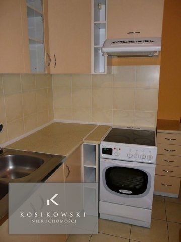 Kuchnia o powierzchni ok. 6,3 m2 stanowi funkcjonalną przestrzeń. Znajdują się w niej kremowe meble kuchenne, elektryczna kuchenka z piekarnikiem, okap, zlewozmywak wraz z baterią, a także lodówka i stół. Podłogę pokryto jasnymi kaflami, a na ścianach częściowo widnieje gładź tynkarska oraz kafle.