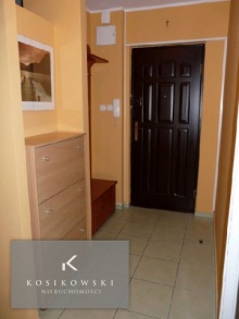 Do każdego z pomieszczeń w mieszkaniu prowadzi przedpokój o powierzchni ok. 5 m2. Znajduje się w nim szafka na buty oraz szafka garderobiana. Podłogę pokryto jasnymi kaflami, a na ścianach widnieje gładź tynkarska pomalowana w jasnych, pastelowych kolorach.