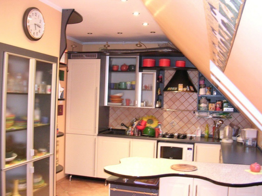 e) dwie duze szafy w korytarzu i pod schodami oraz liczne schowki (zabudowane skosy)