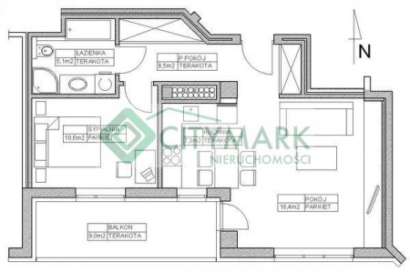 Lokal 3-pokojowy o powierzchni 67,66 m2. Pokój dzienny z aneksem kuchennym o pow. 25,31 m2, pokój 10,42 m2, pokój o pow. 14,58 m2, łazienka 3,79 m2, WC o pow. 1,92 oraz przedpokój 7,84 m2. Z pokoju z aneksem wyjście na balkon o powierzchni 3,90 m2.