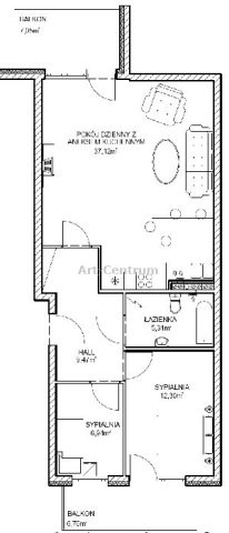 Powierzchnia pokoi [m2]: 37,12 m2 z aneksem//12,39//6,94 |