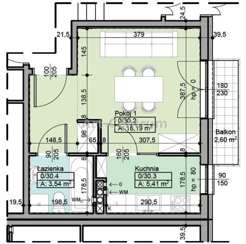 Powierzchnia balkonów/tarasów [m2]: 2,60 |