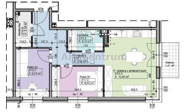 Powierzchnia pokoi [m2]: 19,46/9,31/8,95 |