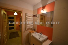Mieszkanie o wysokim standardzie, wyposażone i umeblowane. Kuchnia z przejściem do jadalni posiada wyjście na atrakcyjny, duży balkon. W łazience wanna i oddzielny prysznic.