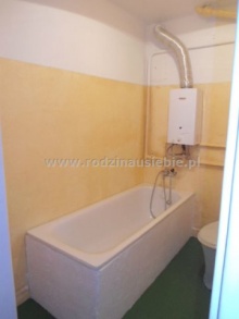 Aneks kuchenny w przedpokoju. Pokój duży, ustawny na podłodze mozaika parkietowa. W łazience wanna.