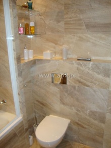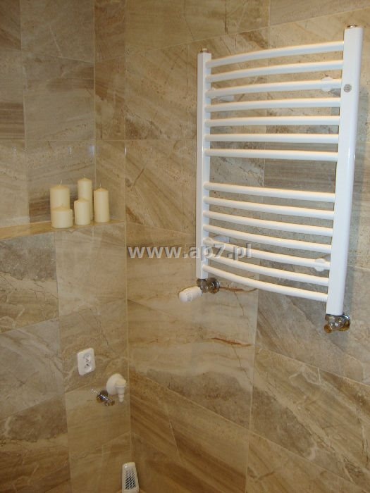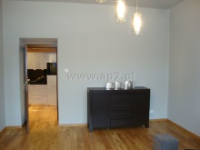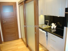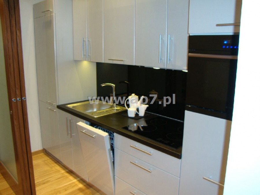 Kuchnia została urządzona w nowoczesny i bardzo praktyczny sposób. Pomimo tego iż znajduje się ona w przedpokoju została doskonale w niego wkomponowana oraz zamontowano drzwi przesuwne umożliwiające jej zamknięcie. W kuchni znajdują się nowoczesne meble oraz wszelkie sprzęty AGD (lodówka z zamrażarką, piekarnik z mikrofalówką, płyta indykcyjna). Do salonu można wejść zarówno z przedpokoju jak i z sypialni. Na podłogach obu tych pomieszczeń położono deskę barlinecką, na ścianach położone gładzie gipsowe. W łazience oprócz tradycyjnego ogrzewania zamontowano ogrzewanie podłogowe elektryczne osobno sterowane. Dodatkowym gadżetem w łazience jest radio zamontowane w suficie do którego można podłączyć ipoda.