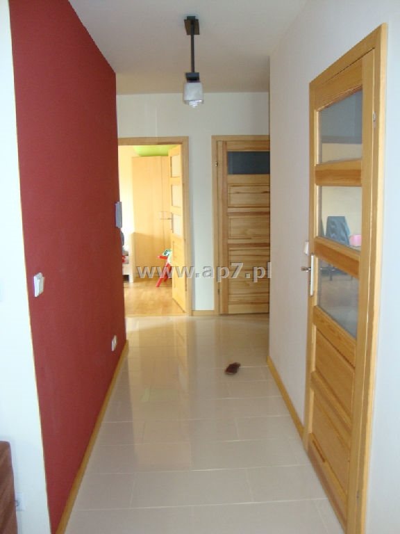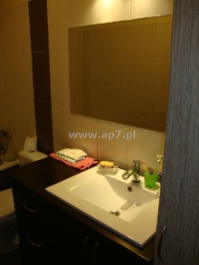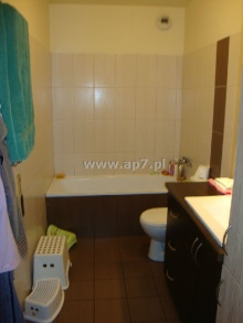 Mieszkanie składa się z: przedpokoju, salonu połączonego z kuchnią, dwóch pokoi, łazienki oraz WC. Z salonu wyjście na balkon z widokiem na inne budynki i zielony skwer z placem zabaw.