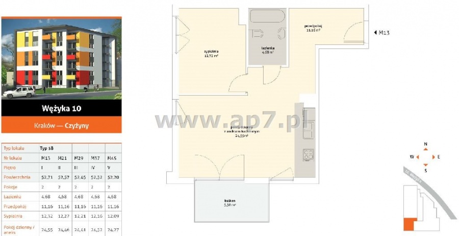 Mieszkanie o pow. 52,36 m 2 znajduje się na I piętrze w VI piętrowym bloku.
