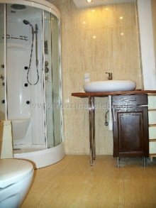 z hydromasażem i sauną, sufit podwieszany z zainstalowanym oświetleniem. W przedpokoju szafa wnękowa. Bardzo duży balkon typu loggia. Ogrzewanie i ciepła woda z sieci miejskiej.