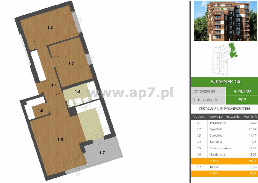 - Powierzchnia: 69.05 m²