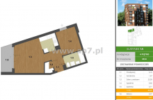 Mieszkanie składa się z: przedpokoju, salonu (z wyjściem na balkon) połączonego z aneksem kuchennym , sypialni, łazienki z WC oraz garderoby.