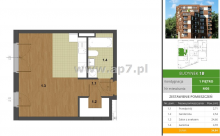 Mieszkanie składa się z: przedpokoju, salonu połączonego z aneksem kuchennym oraz łazienki z WC.