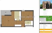 Mieszkanie składa się z: przedpokoju, salonu (z wyjściem na balkon) połączonego z aneksem kuchennym, łazienki z WC.