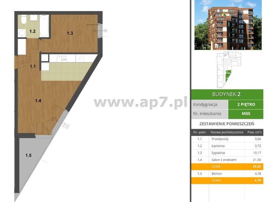 - Powierzchnia: 39.05 m²