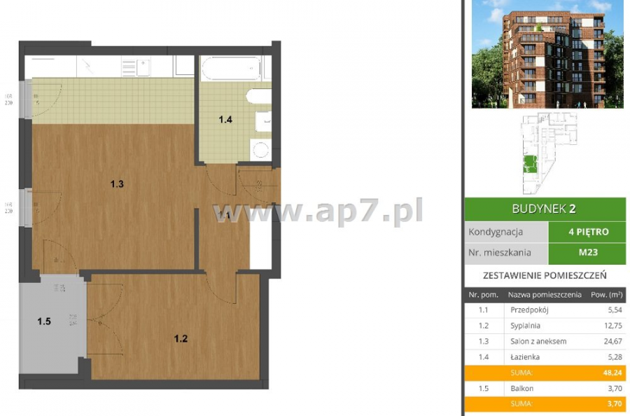 - Powierzchnia: 48.24 m²