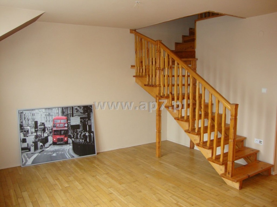 W pokojach na podłodze położony parkiet natomiast w pozostałych pomieszczeniach terakota. Ściany pokryte gładzią gipsową i pomalowane. Schody prowadzące na drugi poziom drewniane.