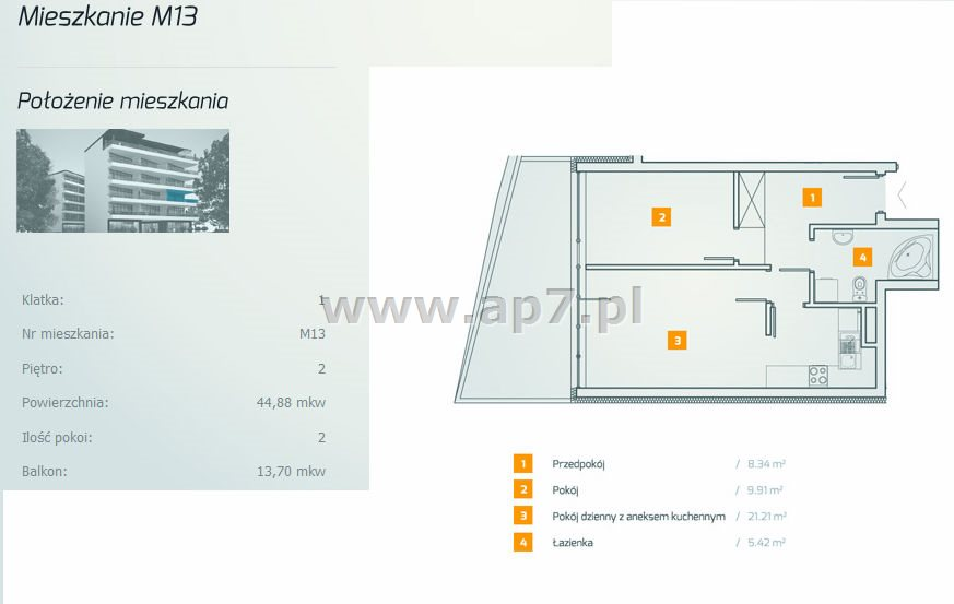 Opis wszystkich mieszkań dostępnych w apartamentowcu dostępny na naszej stronie internetowej www.ap7.pl.