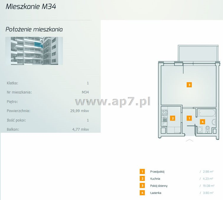 Opis wszystkich mieszkań dostępnych w apartamentowcu dostępny na naszej stronie internetowej www.ap7.pl.