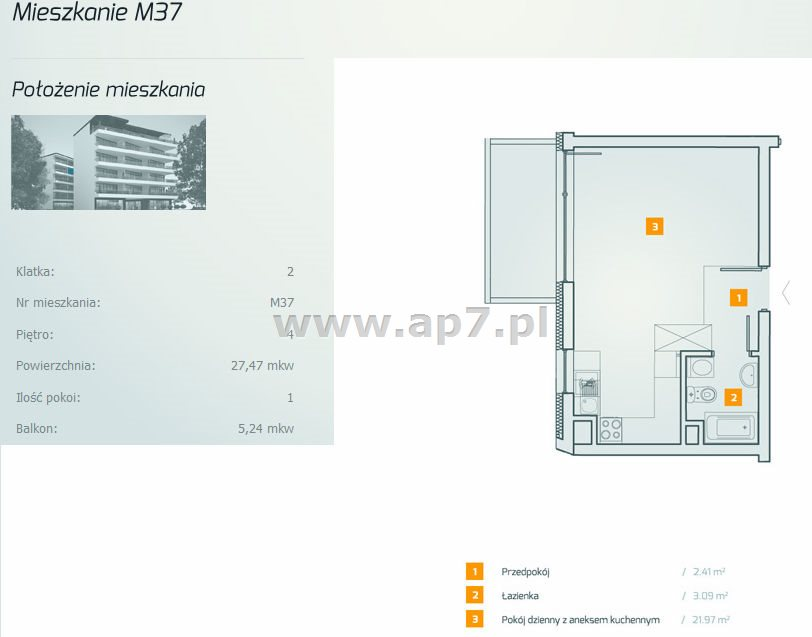 Opis wszystkich mieszkań dostępnych w apartamentowcu dostępny na naszej stronie internetowej www.ap7.pl.