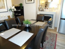 Jedną z największych zalet jest to, że w salonie znajduje się kominek elektryczny który działa nawet w letnie wieczory i noce nie ogrzewając pomieszczenia jak tradycyjny ogień a jesienią oprócz efektu palącego się drewna skutecznie dogrzewa pomieszczenie. Niesamowity Klimat mieszkania czyni go atrakcyjnym.