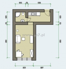Mieszkanie składa się z: przedpokoju z aneksem kuchennym, pokoju oraz łazienki z WC.