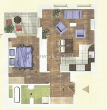 Mieszkanie składa się z: przedpokoju, salonu z aneksem kuchennym, sypialni oraz łazienki z WC.