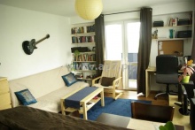 Składa się ono z przedpokoju, salonu połączonego z jasną zabudowaną meblami kuchnią, sypialni i łazienki z w c.