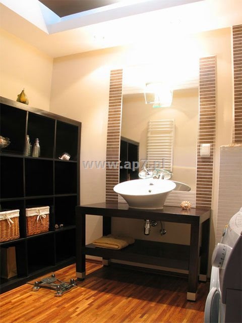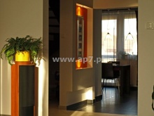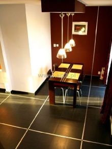 Mieszkanie jest w pełni umeblowane i gotowe do zamieszkania. Wysokiej jakości sprzęt AGD oraz meble na wymiar w kuchni, umeblowana jadalnia, trzy duże szafy wnękowe, w salonie kominek na drewno. Na podłogach parkiet merbau, gres).