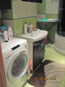 Mieszkanie jest umeblowane. W kuchni zabudowa kuchenna oraz sprzęt AGD (lodówka, zamrażarka, kuchnia gazowa, piekarnik elektryczny, zmywarka, elektryczny podgrzewacz do wody, okap). W przedpokoju szafa wnękowa oraz szafka na buty. W łazience pralka.