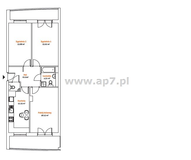 W naszej ofercie posiadamy również mieszkanie 3 pokojowe: