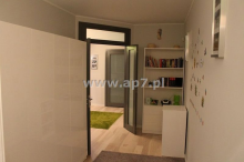 W pokojach na podłodze położony jesion bielony, natomiast w pozostałych pomieszczeniach gres. Ściany pokryte gładzią gipsową i pomalowane na neutralne kolory.